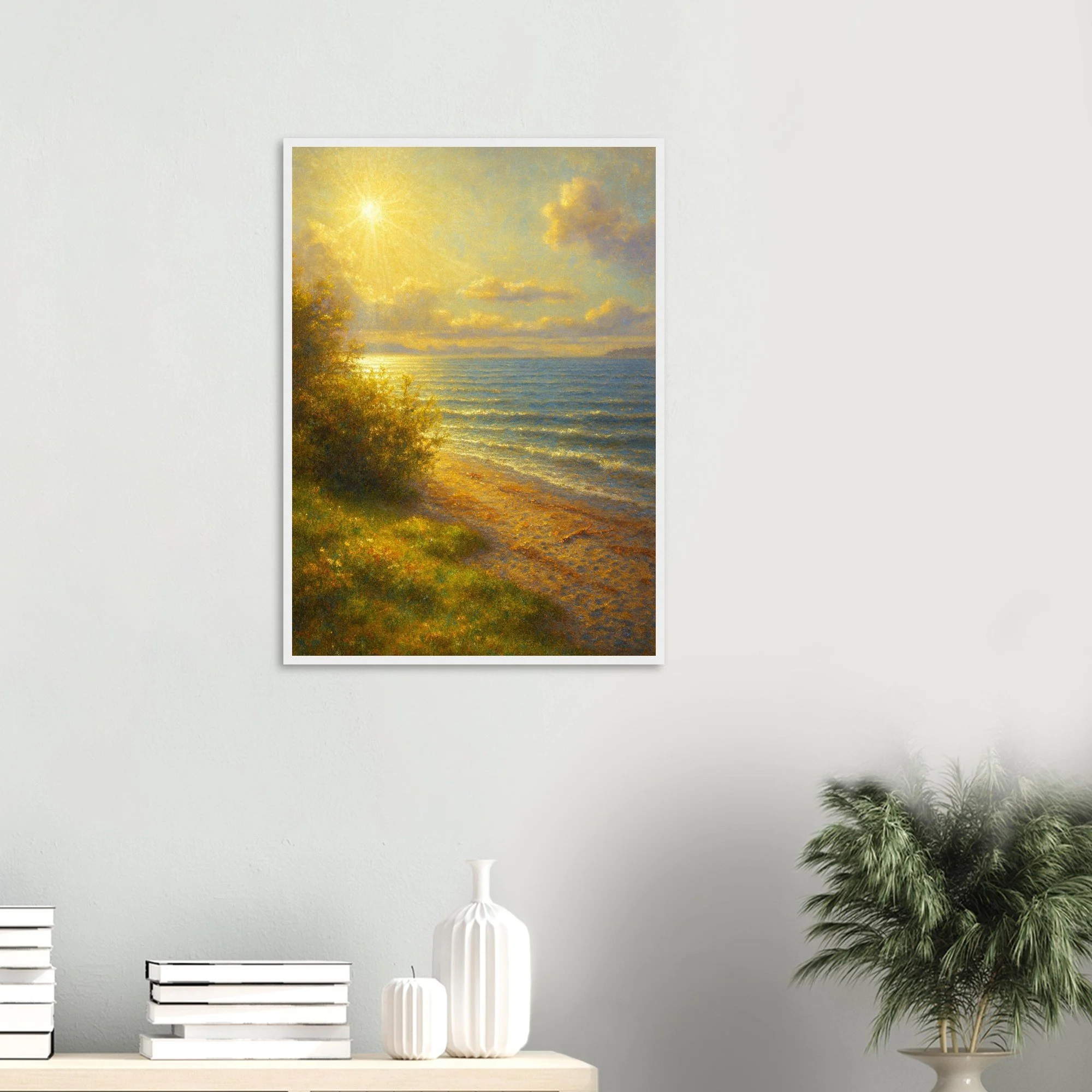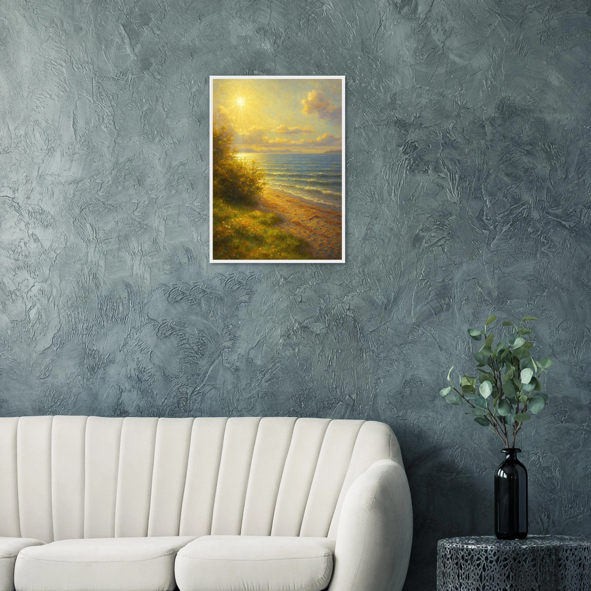 Transform your space with our Serene Sunset Coastal Framed Poster, the ultimate piece for adding calm and beauty to your home. This captivating artwork captures a breathtaking sunset on the coast, where the vibrant hues of orange and pink melt into soothing blues, creating a sense of peace that echoes through any room. Perfect for living rooms, bedrooms, or cozy reading nooks, this poster invites serenity into your space while serving as a stunning focal point. Crafted with care, our sturdy framed posters are printed on heavyweight white matte paper, providing a smooth and luxurious finish designed to stand the test of time.